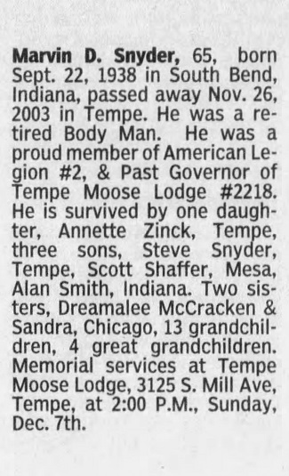 Published in the Arizona Republic (Phoenix, AZ) on Wednesday, December 3, 2003.